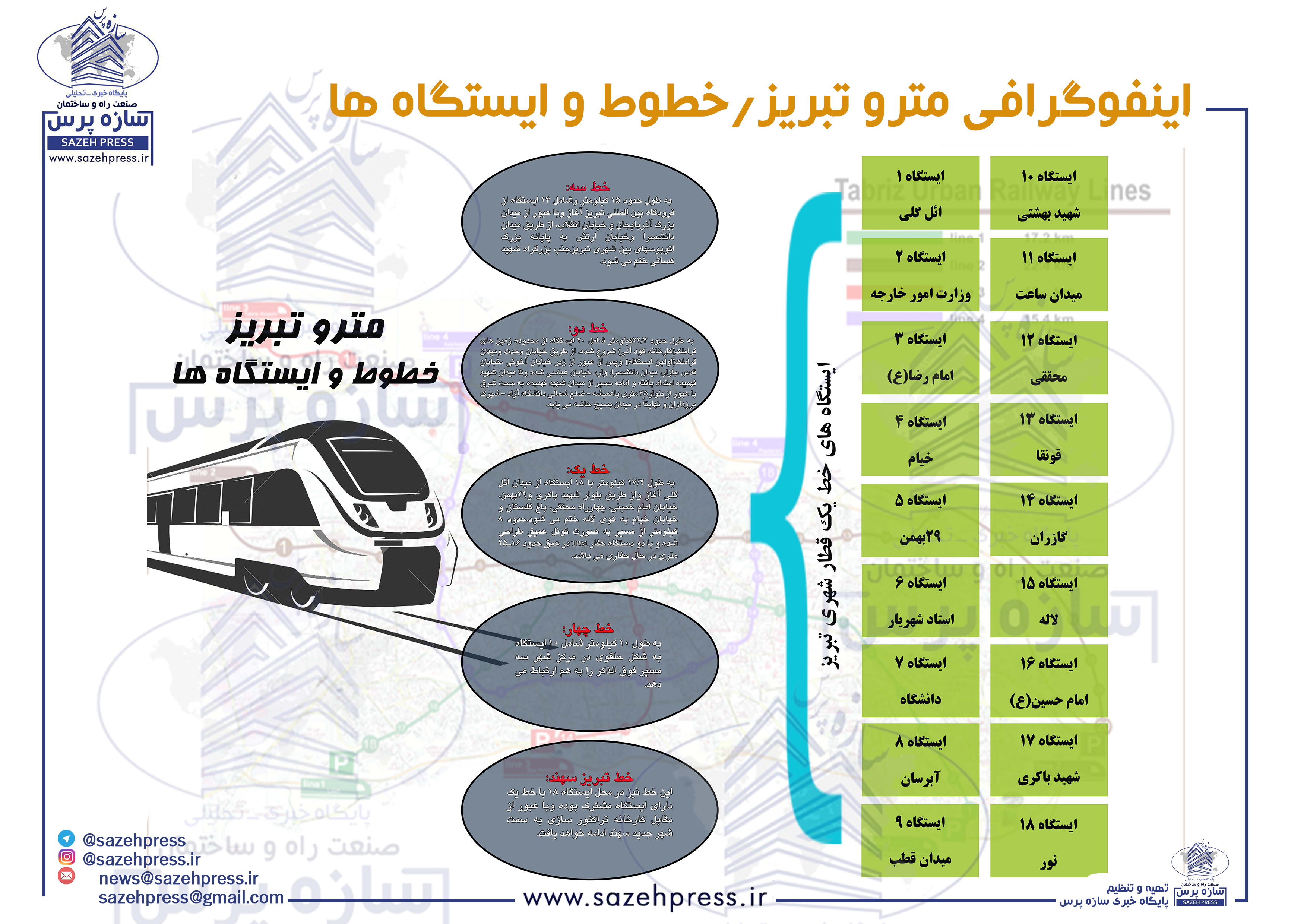 اینفوگرافی*مترو تبریز،خطوط و ایستگاه ها | پایگاه سازه خبر
